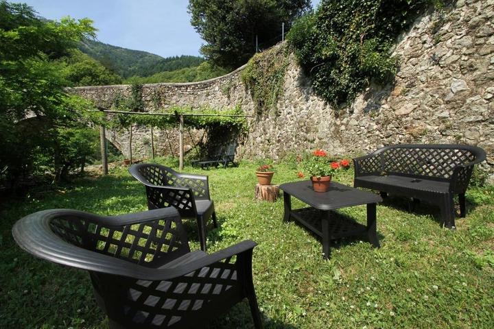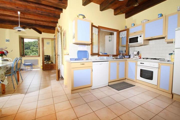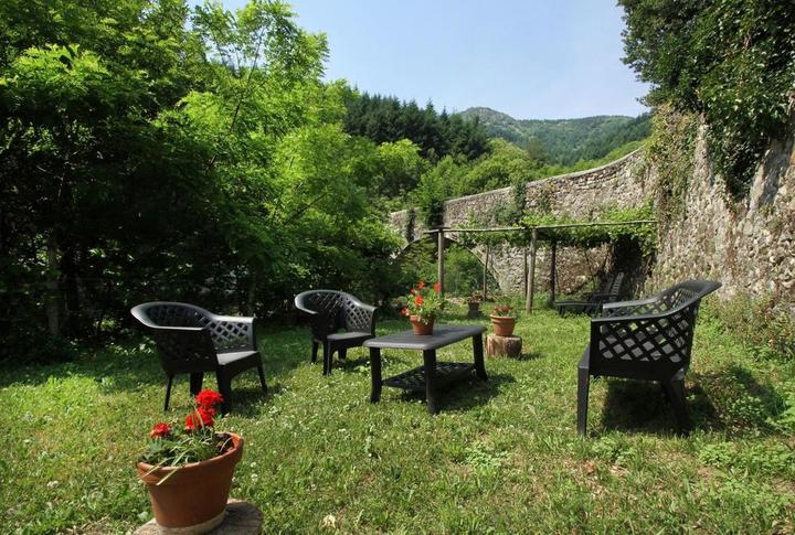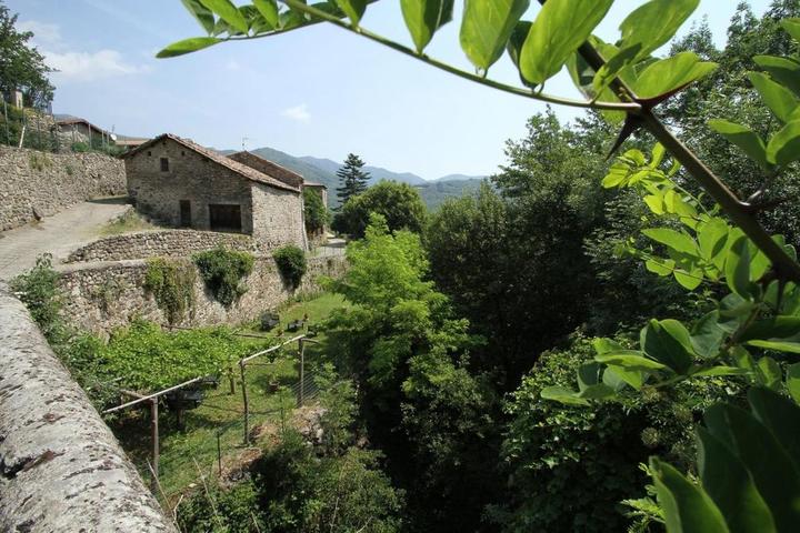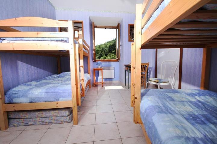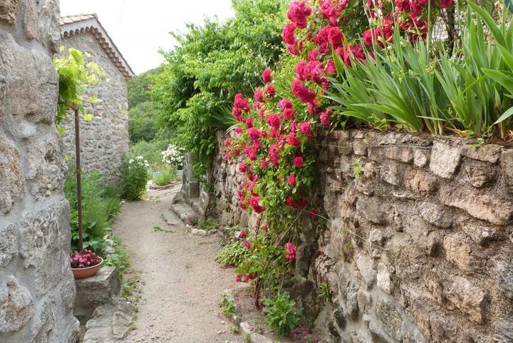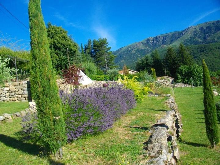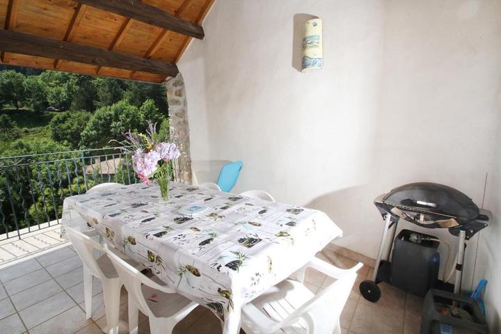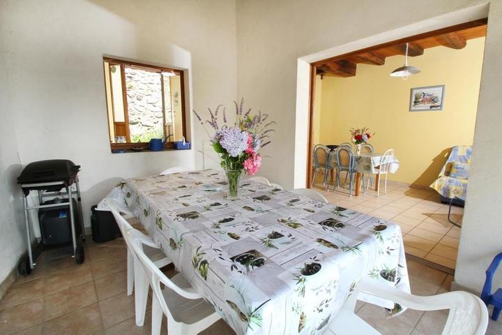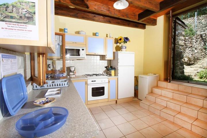 2 self contained gîtes, in fully renovated stone house, in peaceful leafy setting below the Tanargue massif in the Monts d'Ardèche Regional Nature park. Les Chataigniers: living room, fitted kitchen area, 2 bedrooms (double bed) (4 single bunks), sofa, shower room, WC. Electric heating. Nearby: medieval villages of Largentière, Joyeuse and their markets, many other traditional villages. Walking/hiking trails on the doorstep. Lovely swimming spots in river Beaume. Ardèche Gorges (canoe), Pont d'Arc and many caves 30km. Large shops 23km. Unfenced garden shared by both gîtes at lower level beside a stream. Gîte at far end of hamlet.