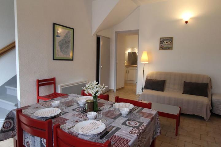 Séjour/ c.cuisine, ch1(1 lit 2 pers.), ch2(2 lits 1 pers.), dans le séjour 1 convertible 2 pers., s.de bains, wc, ch. électr., terrasse et terrain communs. Petite épicerie, bar- restaurant dans le village. Grands commerces à 35 km. A proximité : Gorges de la Beaume, canyon de la Borne, station loisirs de la Croix de Bauzon.