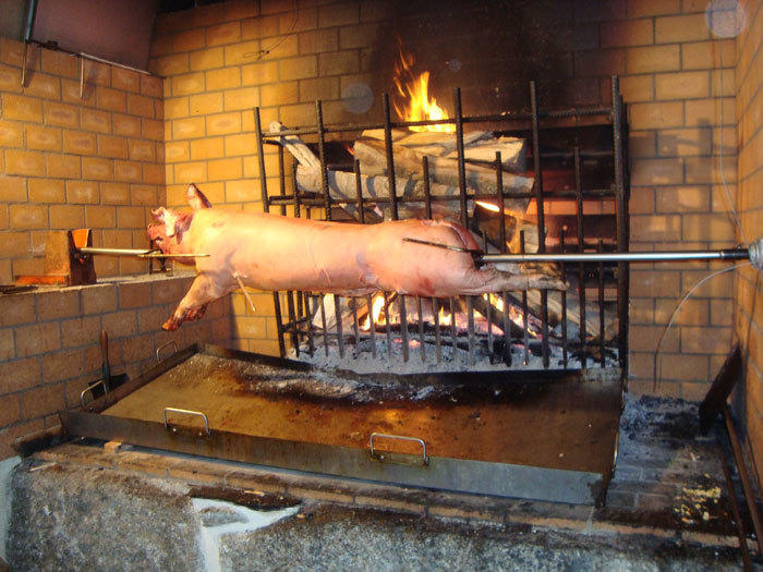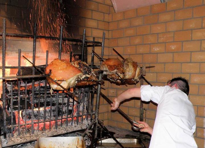 The spit at La Bombine Farmhouse Inn rotates with veal, beef and lamb...Other options include a deliciously fragrant meat pie, a marvellous mushroom gratin, a stew and more. La Bombine is a riot of flavours and aromas!